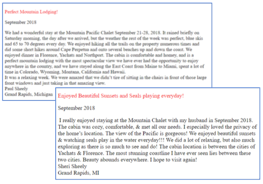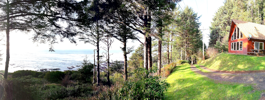 The Mountain Pacific Chalet sets back off the road, with gated security. The forest, mountains and ocean can be viewed from all rooms in this beautiful Cedar Chalet and rest assured, it has one of the most breath taking views on ALL of the rugged Oregon Coast. You won't be disappointed!