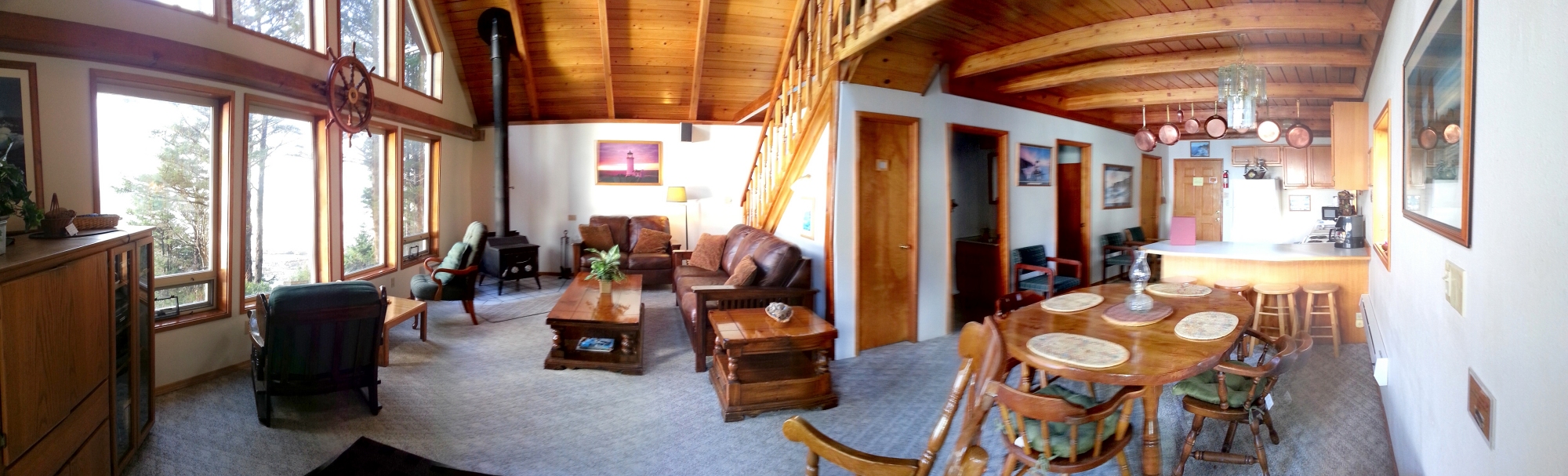 Imagine sitting in the great room with its huge wooden beams and glowing wood stove, and watching as Whales, Orcas, Seals and Sea Lions swim within a few hundred feet from where you are sitting. You will also watch Bald Eagles soar overhead as countless Eagles call this area (Seal Point) home.