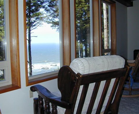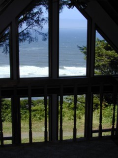 The Mountain Pacific Chalet sets back off the road, with gated security. The forest, mountains and ocean can be viewed from all rooms in this beautiful Cedar Chalet and rest assured, it has one of the most breath taking views on ALL of the rugged Oregon Coast. You won't be disappointed!