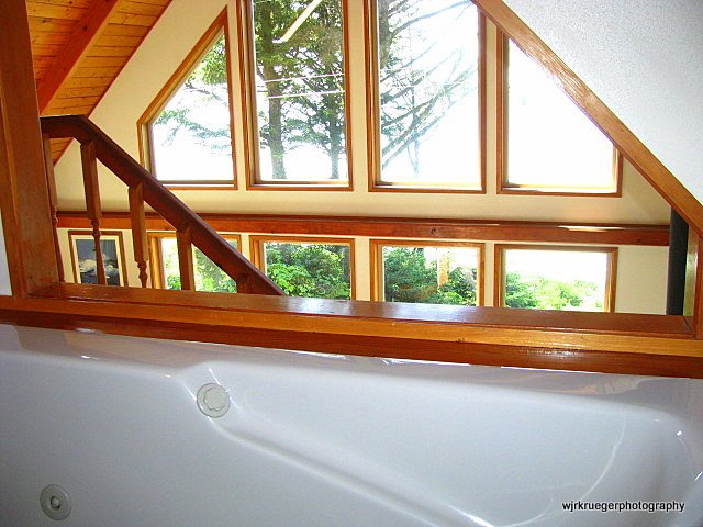 If you want a true Oregon experience, and if privacy, solitude and pristine environment, is what you desire and deserve, the gated privacy of Historic Mountain Pacific Chalet is the cabin for you! The thundering Pacific Ocean, the emerald green Coast Mountains and the pristine Ancient Forest is all that can be seen and heard at this unique cabin. Perched on a forested mountainside 250 ft. above the sea, this exposed beam A-Frame Cedar Chalet with its custom mill work, huge beams, glowing wood stove, an outside ocean view hot tub, and indoor ocean view jacuzzi, will make for a one of a kind experience.